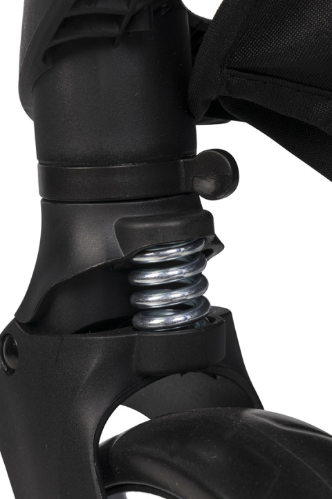 - Amortyzacja wszystkich kół i obrotowe koła przednie z blokadą.