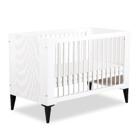 KLUPŚ MIA 120x60 – Białe łóżeczko dziecięce z czarnymi nóżkami