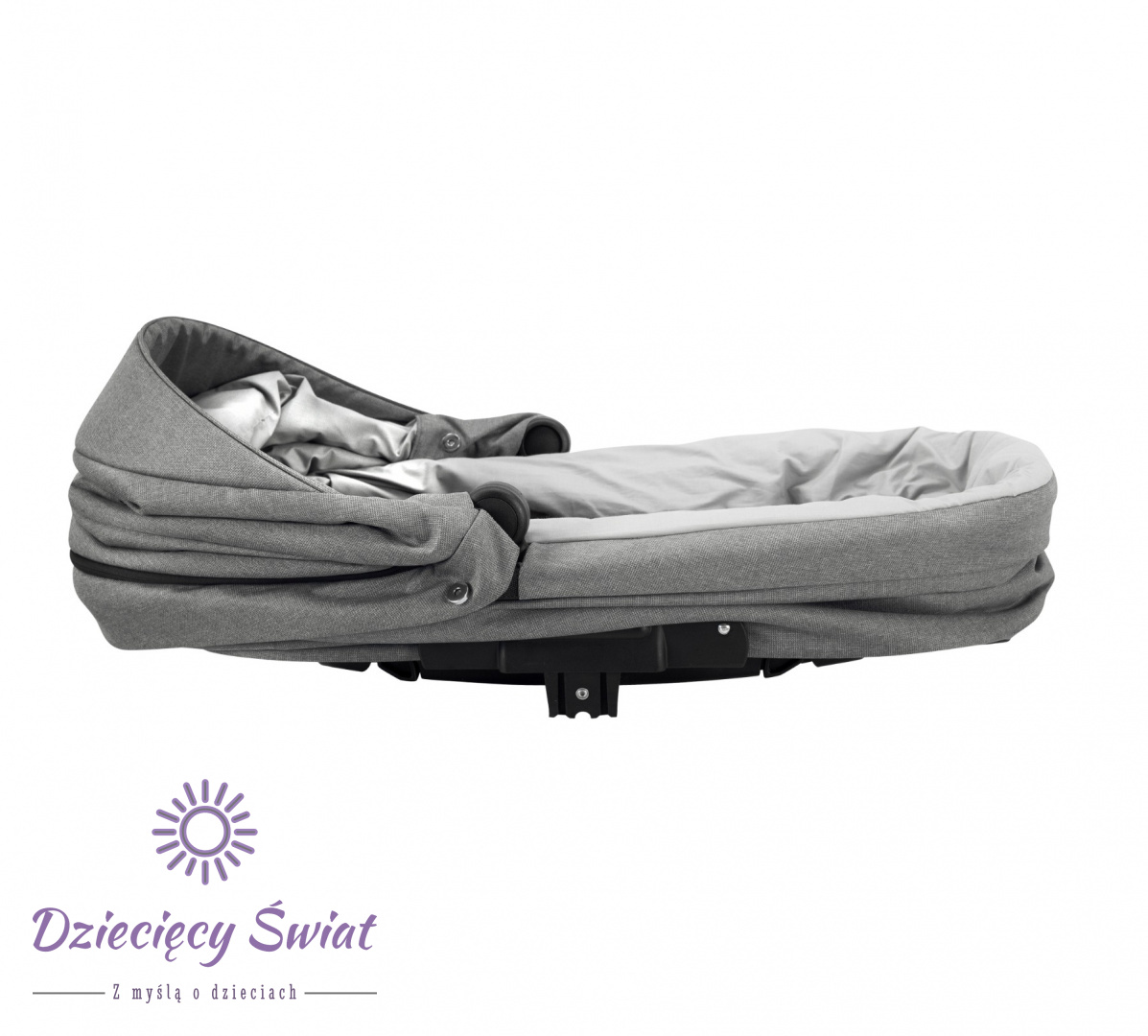 - Duża gondola – wygodna, miękko wykończona przestrzeń do snu od pierwszych dni życia.