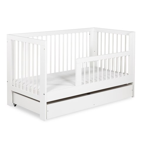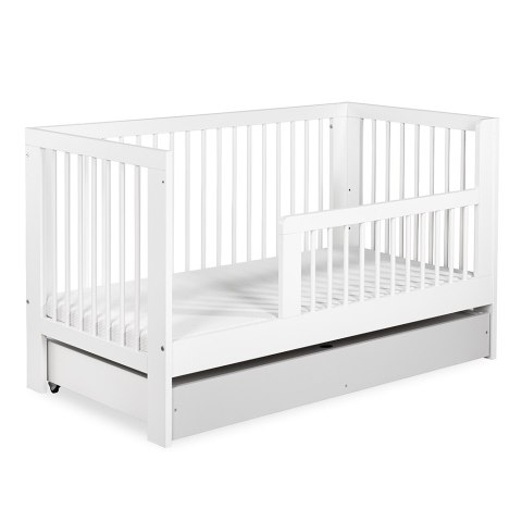 - 2w1 – rośnie razem z dzieckiem: Funkcja tapczanika pozwala przekształcić łóżeczko w pełnowymiarowe miejsce do spania dla starszaka – bez konieczności wymiany mebla.