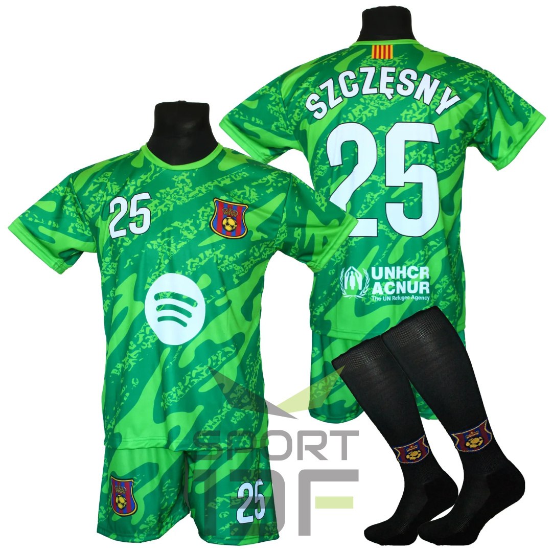 Trudno znaleźć młodych fanów piłki nożnej, którzy nie kojarzyliby nazwiska Szczęsny. Ten utalentowany bramkarz ma na koncie wiele sukcesów, więc nikogo nie powinna dziwić popularność związanych z nim strojów. Porządnie wykonany strój piłkarski Szczęsny z pewnością wywoła uśmiech na twarzy każdego bramkarza. Zestaw dostępny jest w odcieniach zieleni i składa się z koszulki, spodenek, skarpetek oraz gratisowego elementu, który każdy może wybrać we własnym zakresie.
